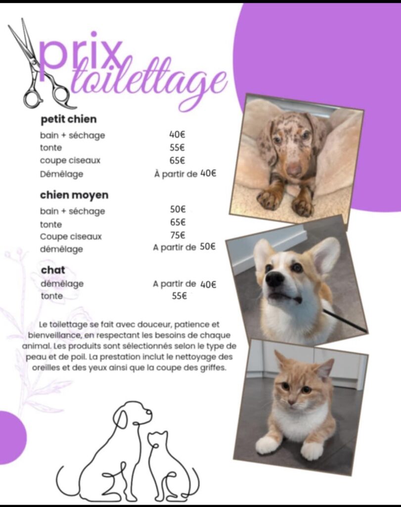 Chez Happy Animals, entre Mons et Soignies, tout est mis en oeuvre pour que le toilettage de votre compagnon se passe pour un mieux. La séance dure approximativement 1 heure (en fonction du chien).